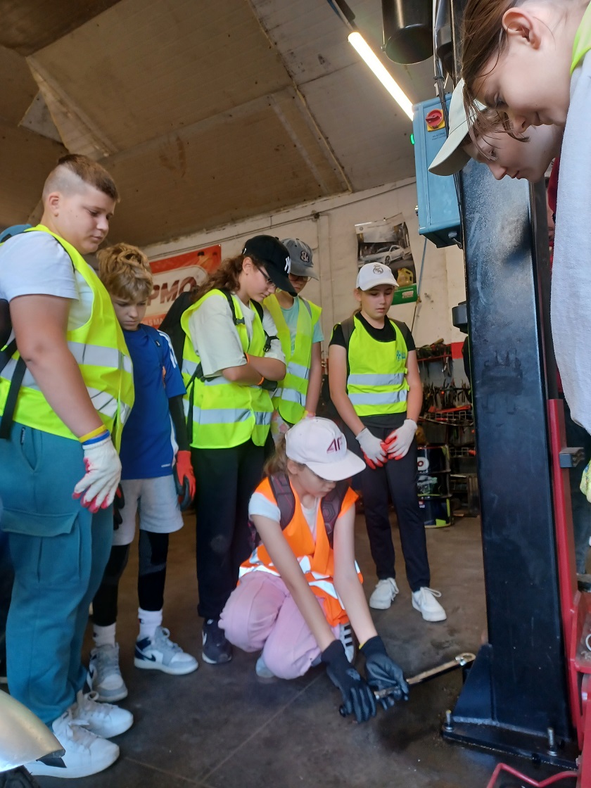 samochodowym dostarczył wielu wrażeń. Uczniowie mieli możliwość bezpośrednio zapoznać się z pracą mechanika samochodowego, z wyposażeniem