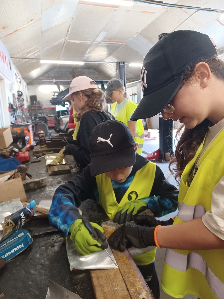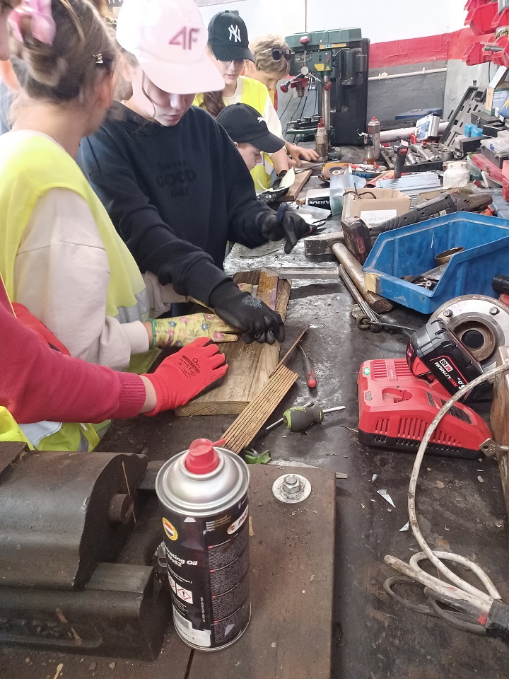 . Praca ta w warunkach szkolnych byłaby niewykonalna ze względu na brak stanowiska i narzędzi. Na koniec właściciel zakładu poczęstował uczestników rajdu