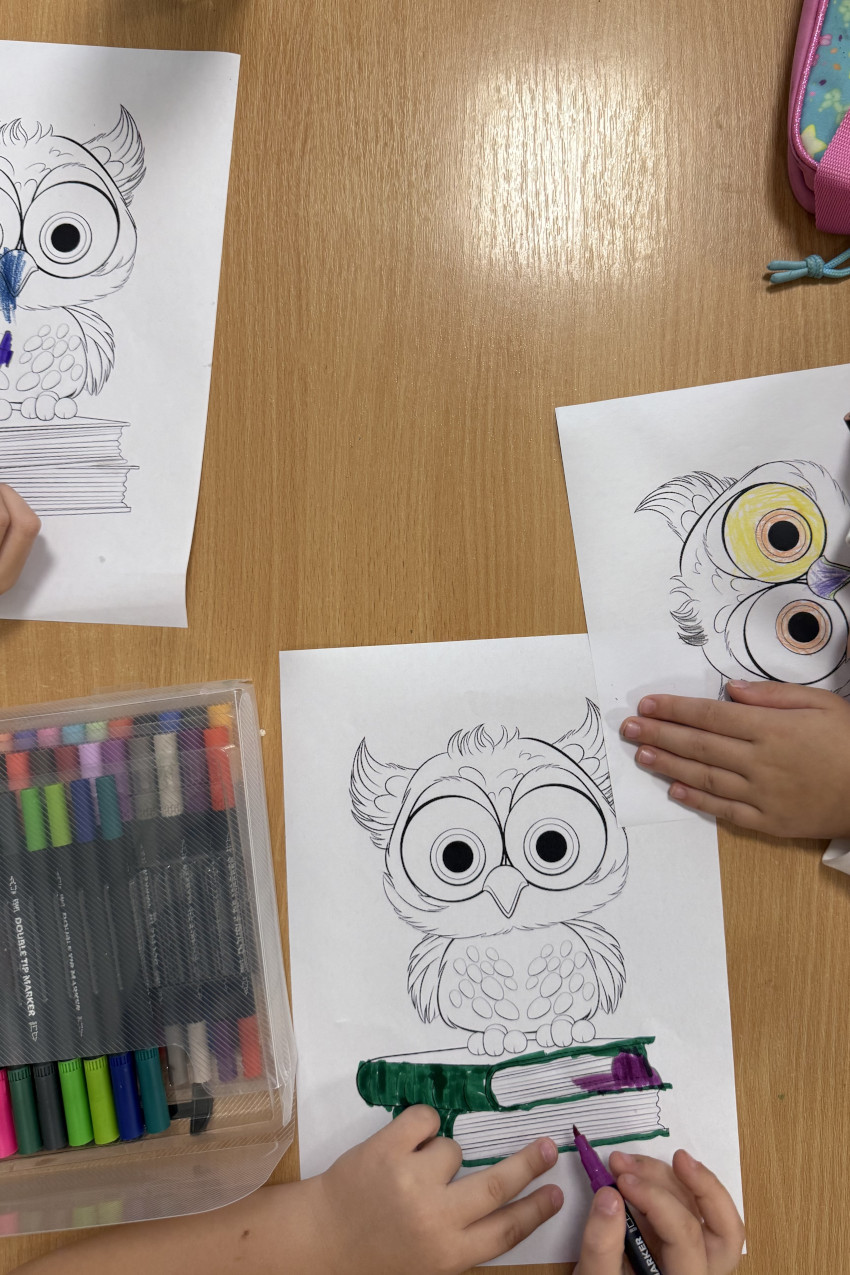 Po zakończeniu czytania odbyły się krótkie zajęcia plastyczne – dzieci wykonały ilustracje książek, kolorowały. Następnie prace zostały wyeksponowane w sali.