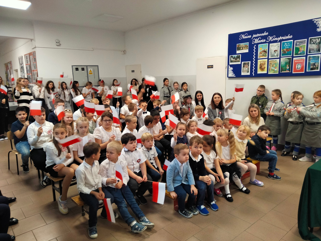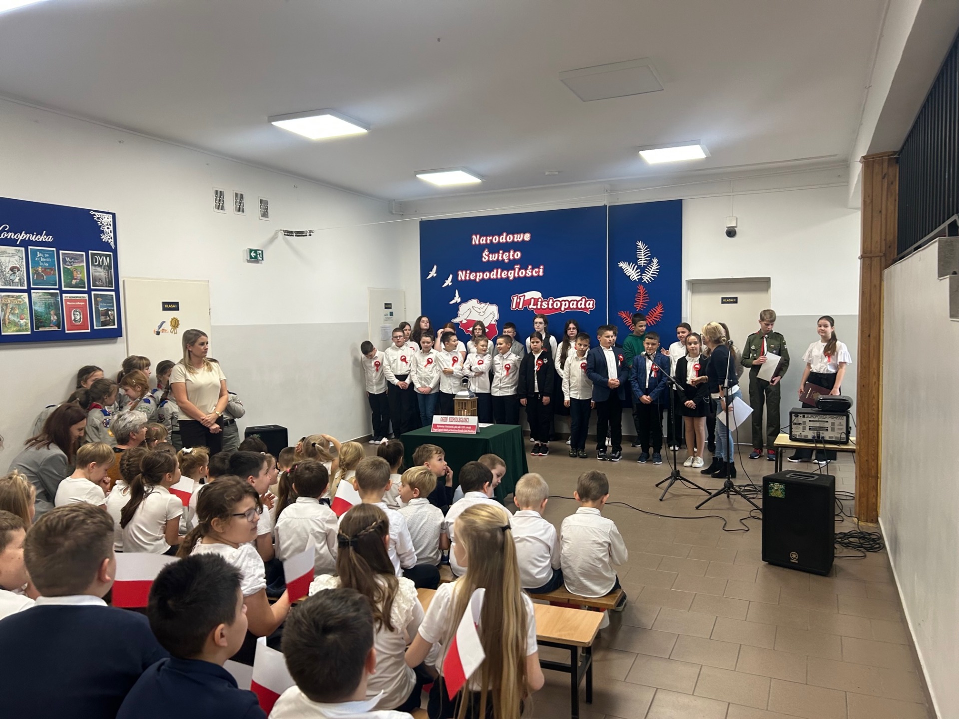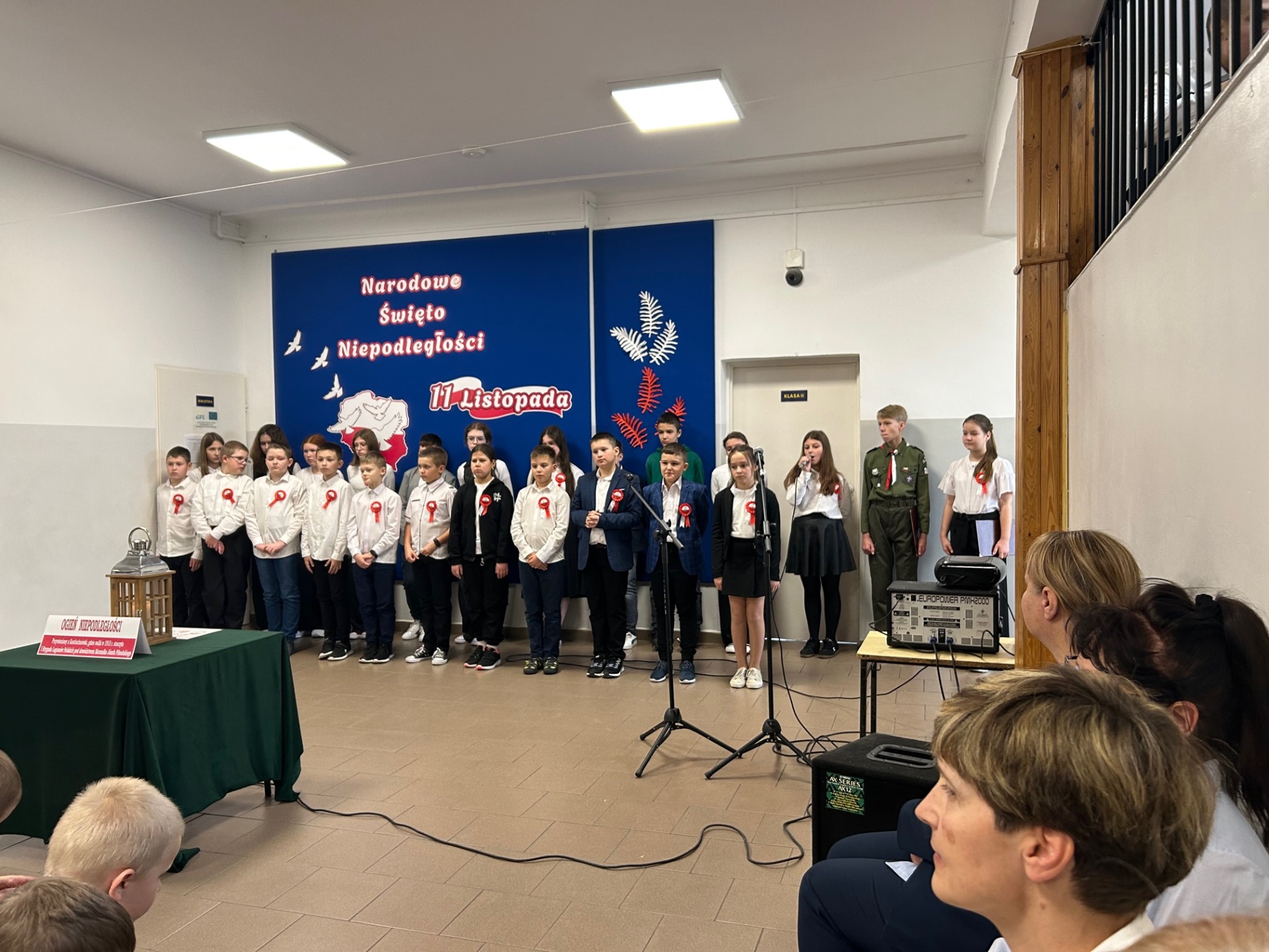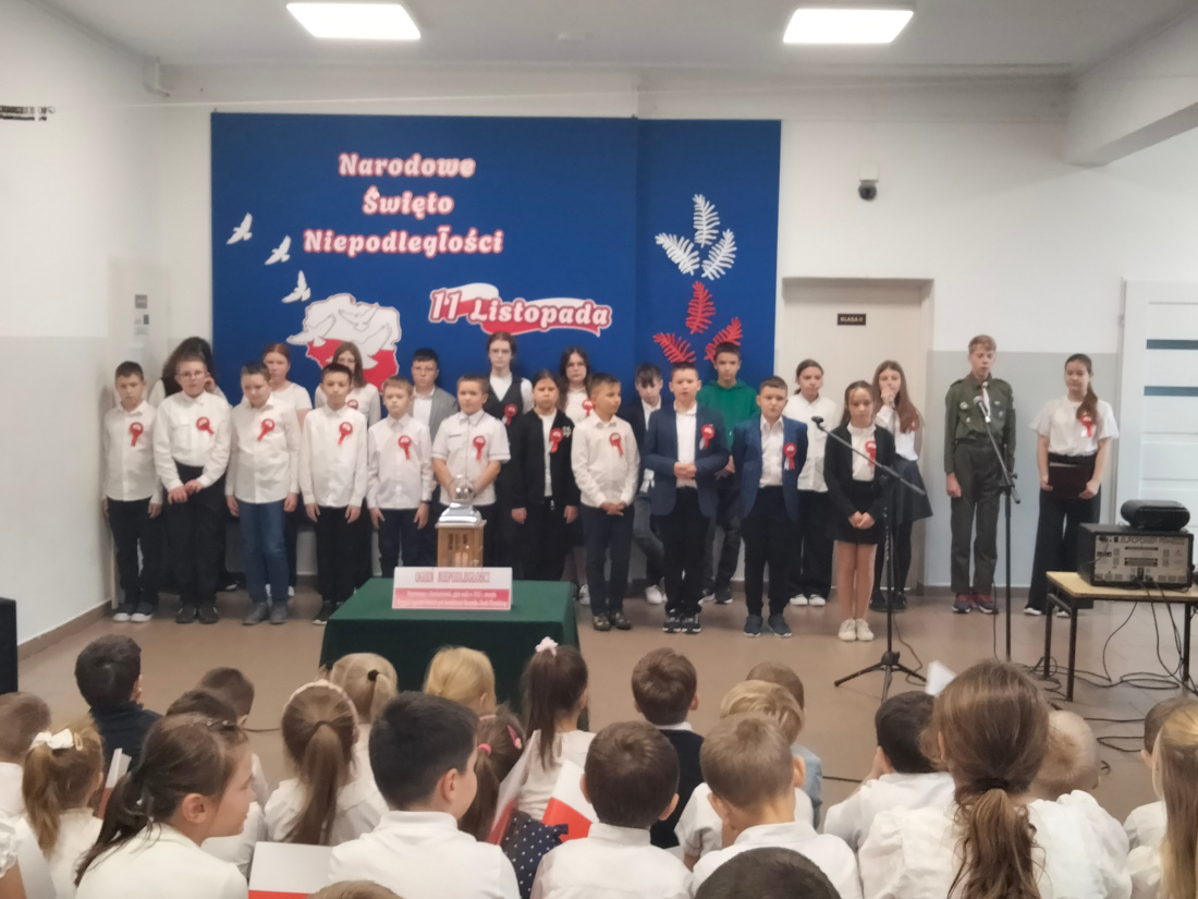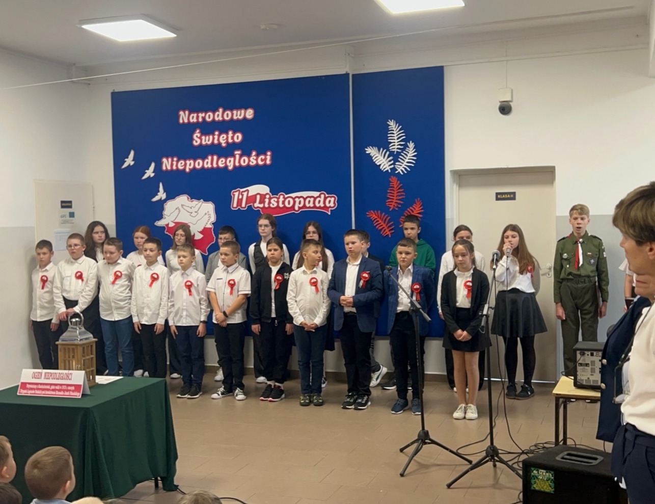 Dnia 7 listopada 2025 roku w naszej szkole odbył się uroczysty apel z okazji Narodowego Święta Niepodległości, przygotowany przez uczniów klasy 4 i 7 pod opieką pani Doroty Kowalczuk i pana Andrzeja Kuśmierczuka. Celem uroczystości było uczczenie 107. rocznicy odzyskania przez Polskę niepodległości oraz kształtowanie wśród uczniów postaw patriotycznych i szacunku do historii Ojczyzny.