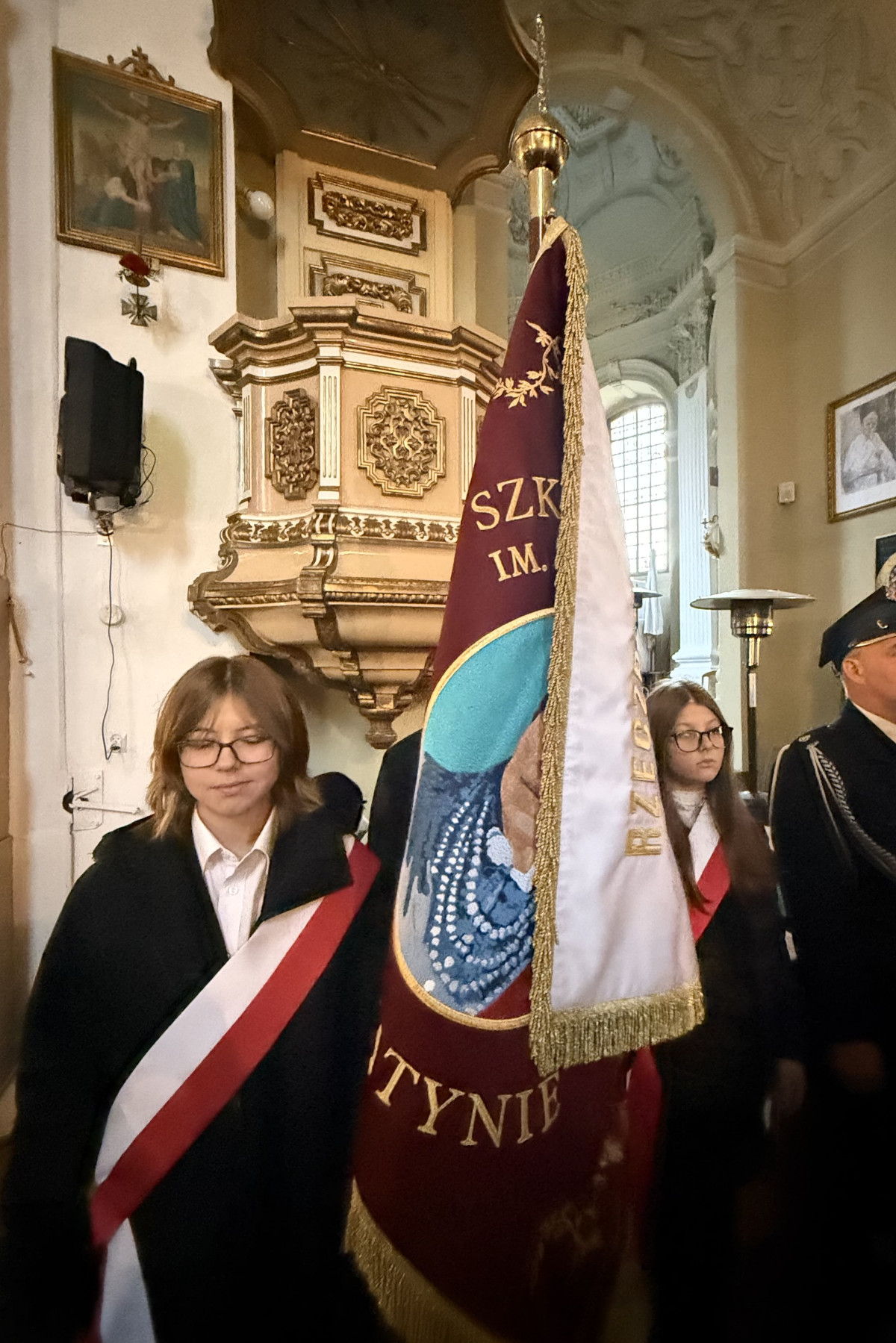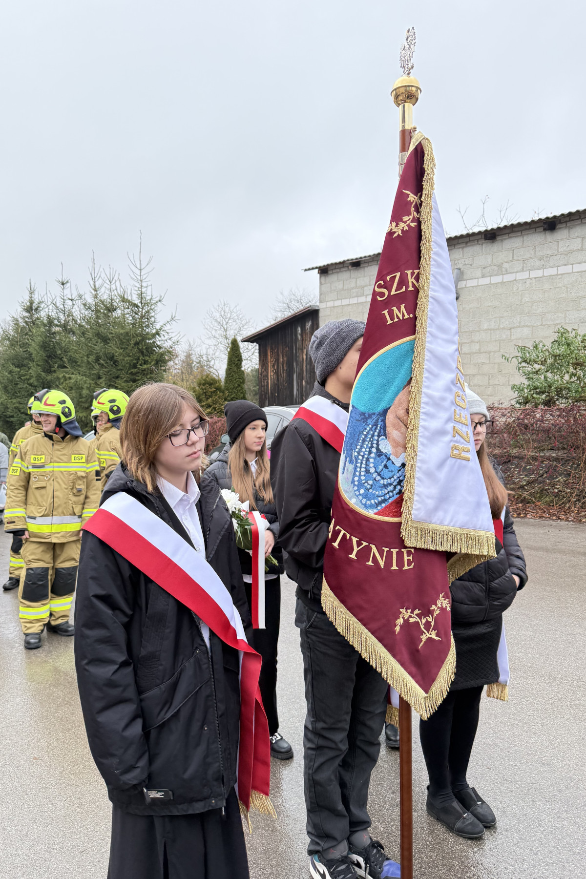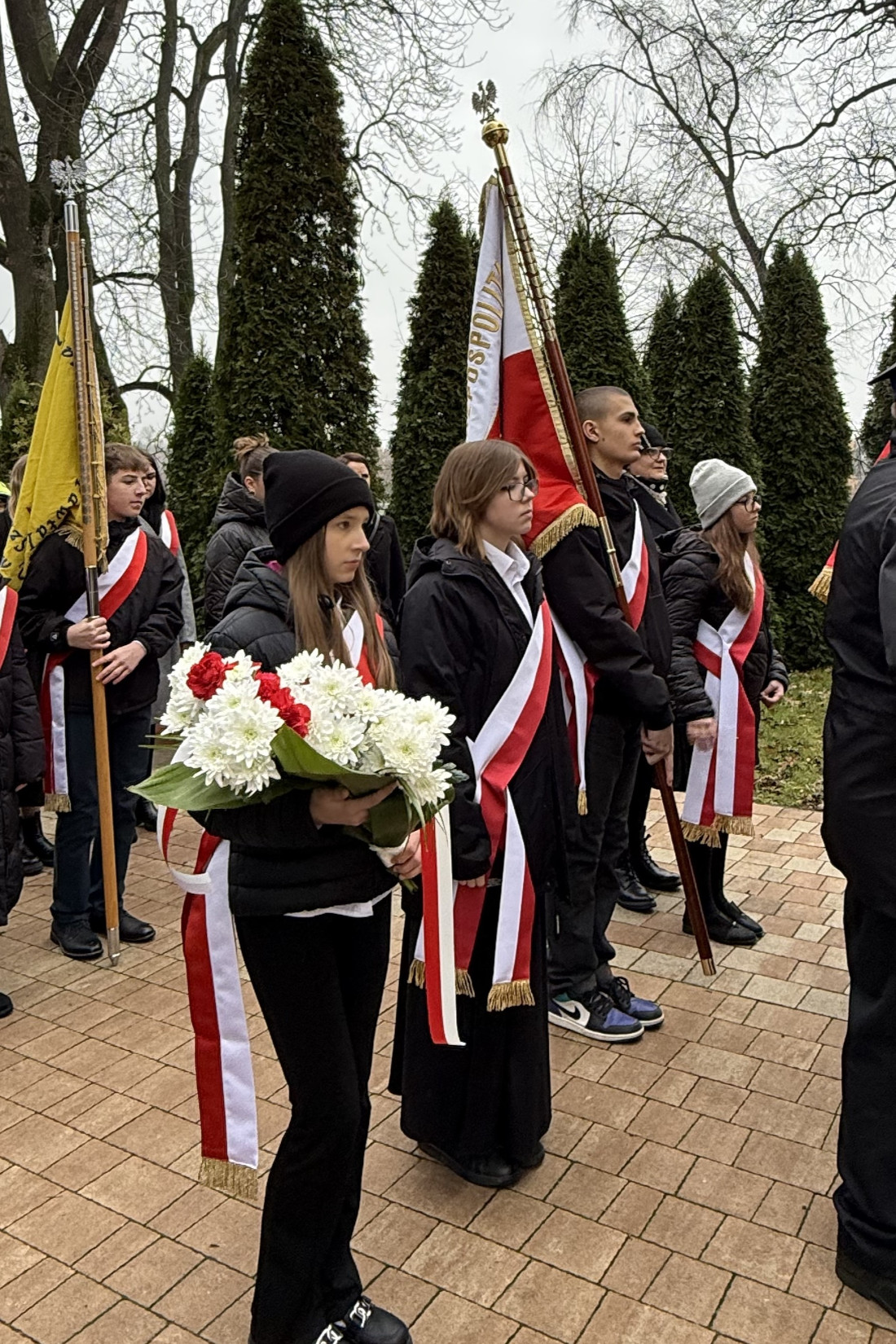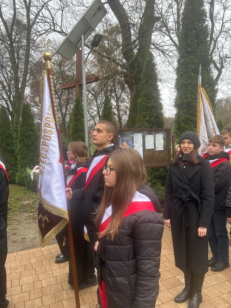 Naszą szkołę reprezentował poczet sztandarowy, w skład którego weszli uczniowie klasy 7 i 8: Karol Guluk, Weronika Kierych, Wiktoria Koniczuk i Martyna Prus wraz z opiekunami: panią Elżbietą Węcławik i panią Katarzyną Węcławik.