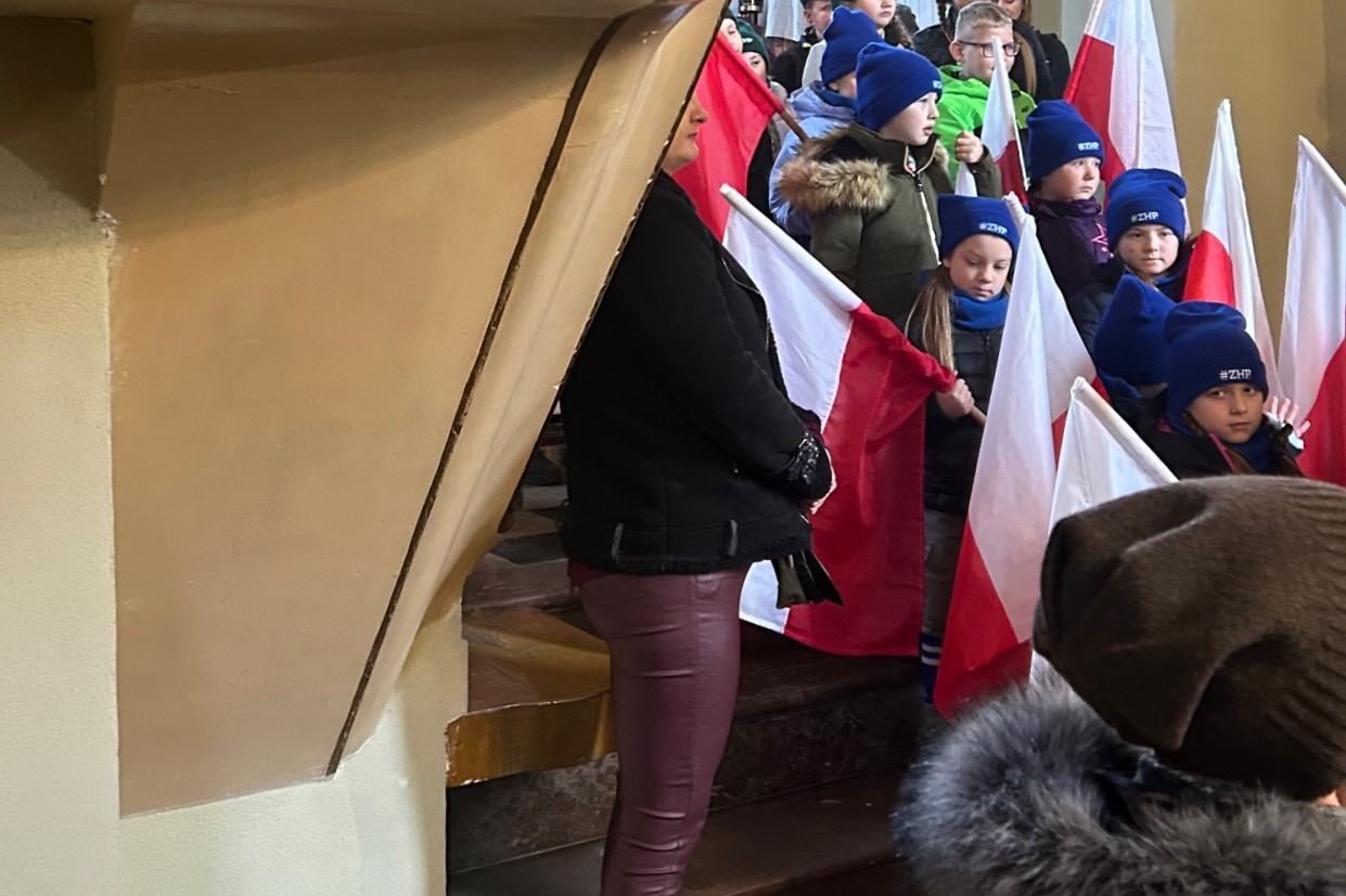 W wydarzeniu wzięła udział Pani Dyrektor Alicja Ważna, nauczyciele, uczniowie oraz rodzice, oddając hołd wszystkim, którzy przyczynili się do odzyskania niepodległości.
