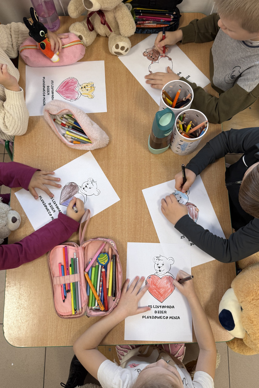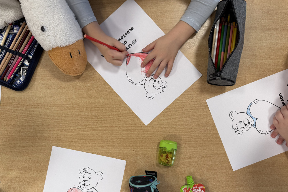 W części plastycznej każde dziecko wykonało portret misia. Powstały barwne i pomysłowe prace, które zostały zaprezentowane na klasowej wystawie. Dodatkową atrakcją było wspólne zdjęcie „z misiami”, które stanie się pamiątką tego wyjątkowego dnia.