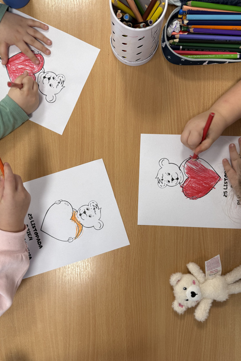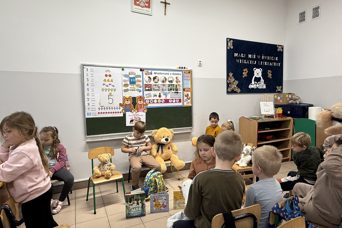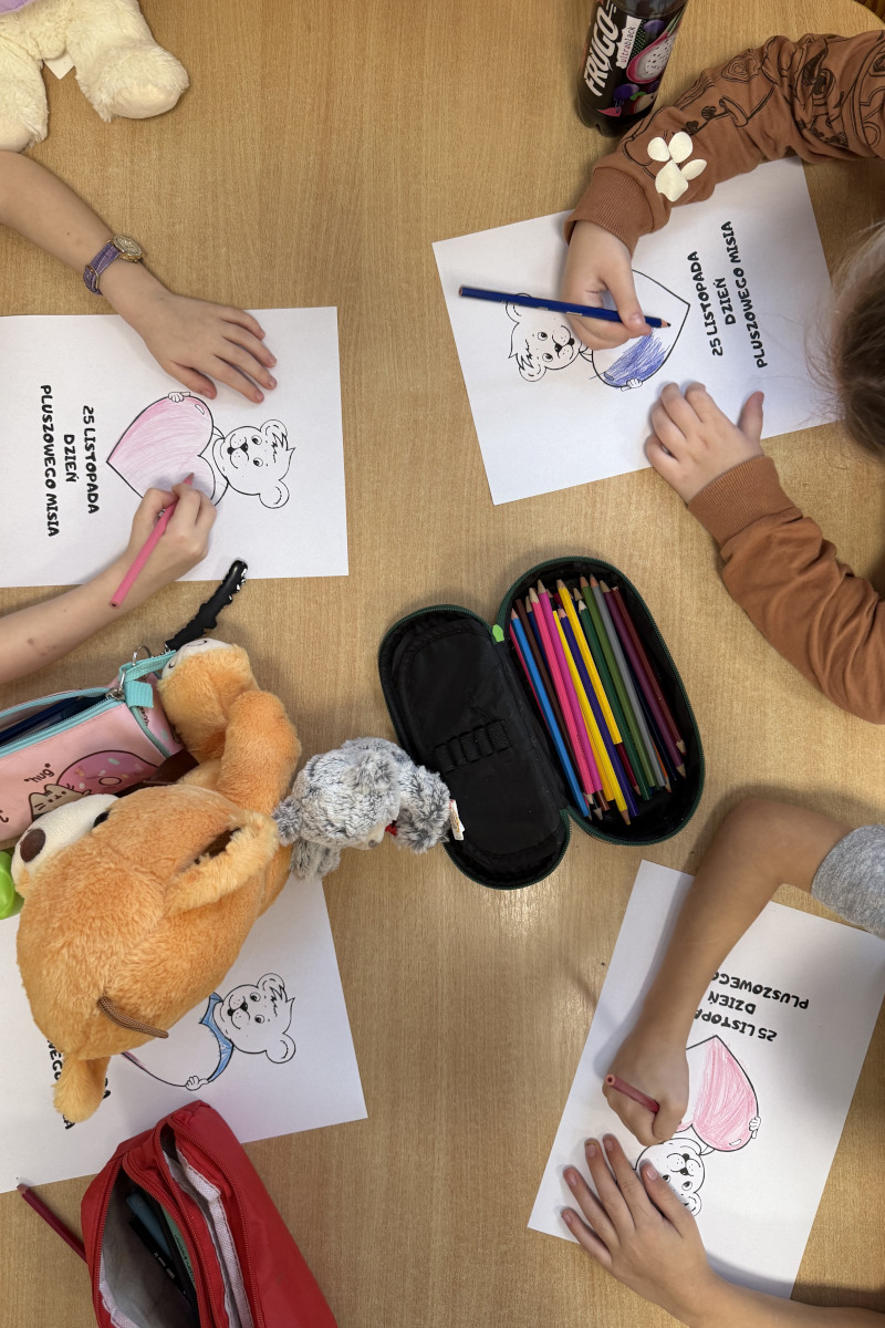 Dnia 25 listopada w grupie dzieci pięcioletnich i sześcioletnich, obchodziliśmy Światowy Dzień Pluszowego Misia. Już od rana, dzieci z entuzjazmem prezentowały swoje ulubione pluszaki – misie małe i duże, klasyczne i nowoczesne, każdy z własną historią. Wspólne świętowanie miało na celu rozwijanie więzi emocjonalnych, integrację grupy oraz kształtowanie umiejętności wyrażania uczuć i troski o innych.