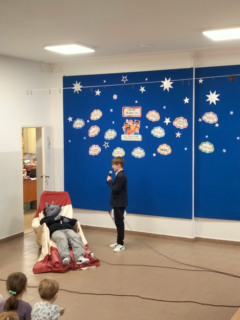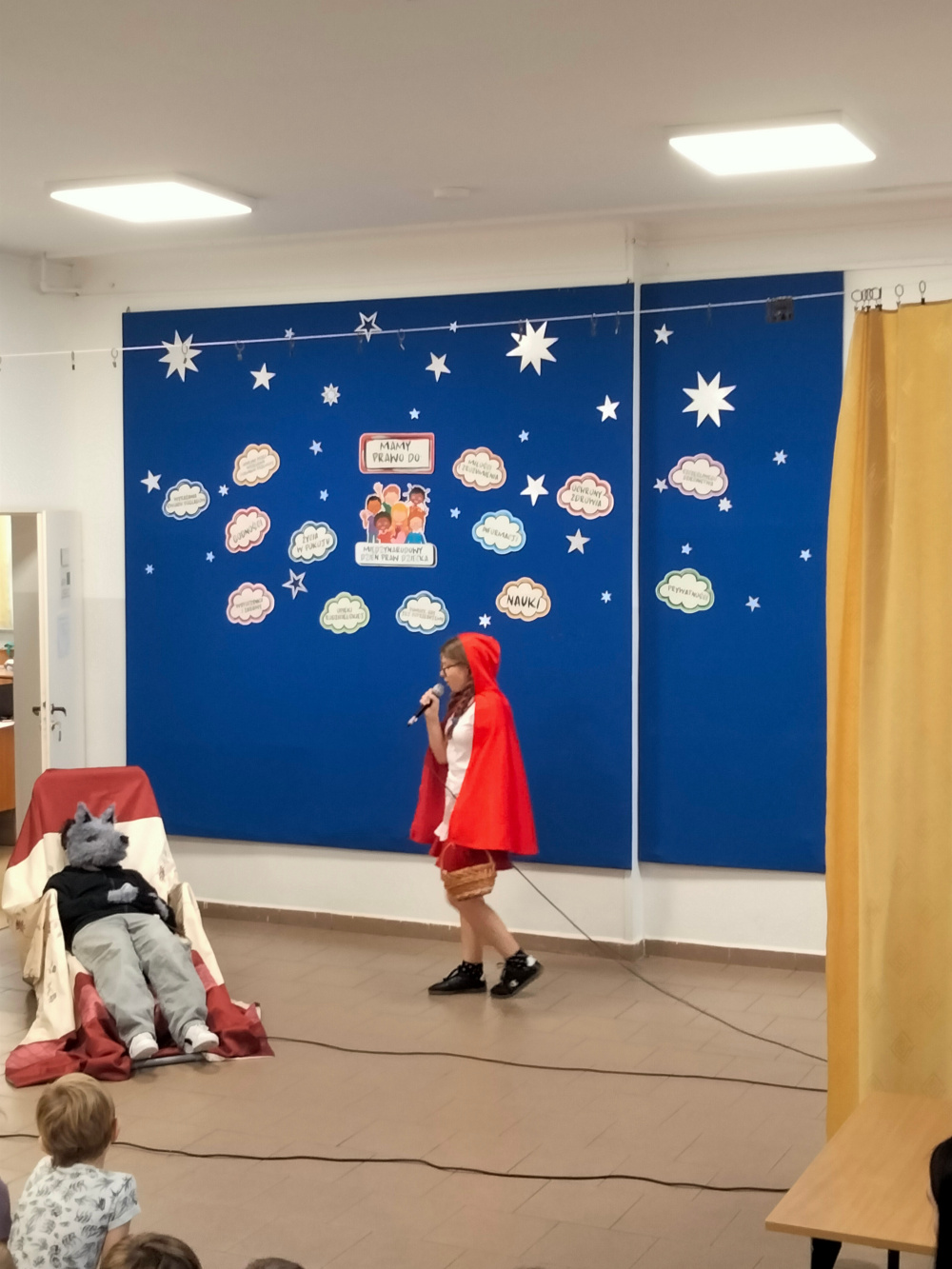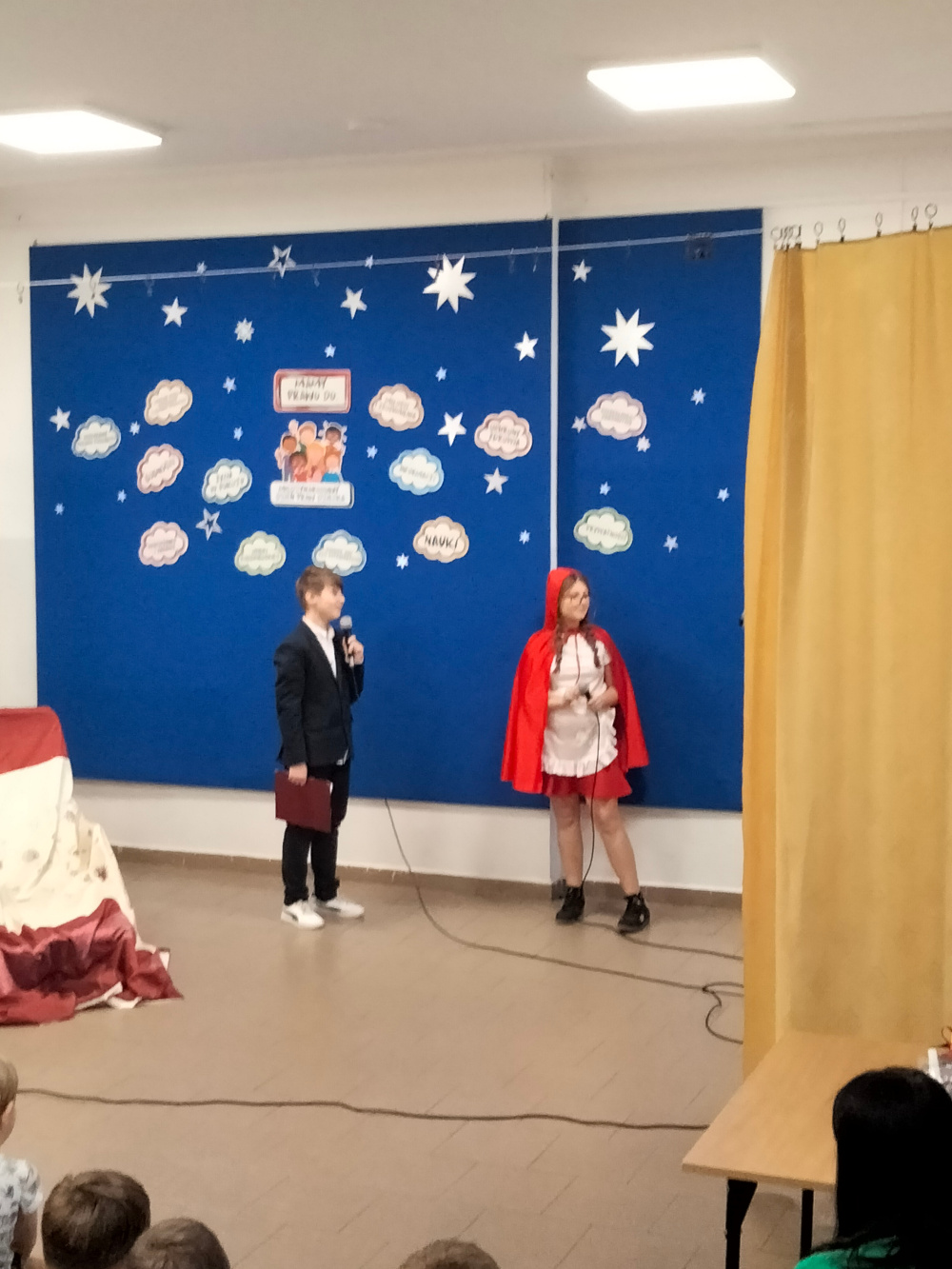 Z okazji Dnia Praw Dziecka uczniowie klasy VII, pod kierunkiem pani pedagog Jolanty Nowak, pani psycholog Izabeli Kaźmiruk, pani pedagog specjalny Agnieszki Mech, przygotowali krótkie przedstawienie, w którym w humorystyczny sposób nawiązali do znanych bajek. Zaprezentowano trzy scenki: z „Kopciuszka”, „Księżniczki na ziarnku grochu” oraz „Czerwonego Kapturka”. Każda z nich podkreślała ważne wartości związane z prawami dziecka – takie jak prawo do szacunku, bezpieczeństwa oraz równego traktowania. Występ spotkał się z dużym zainteresowaniem i został bardzo ciepło przyjęty przez publiczność.