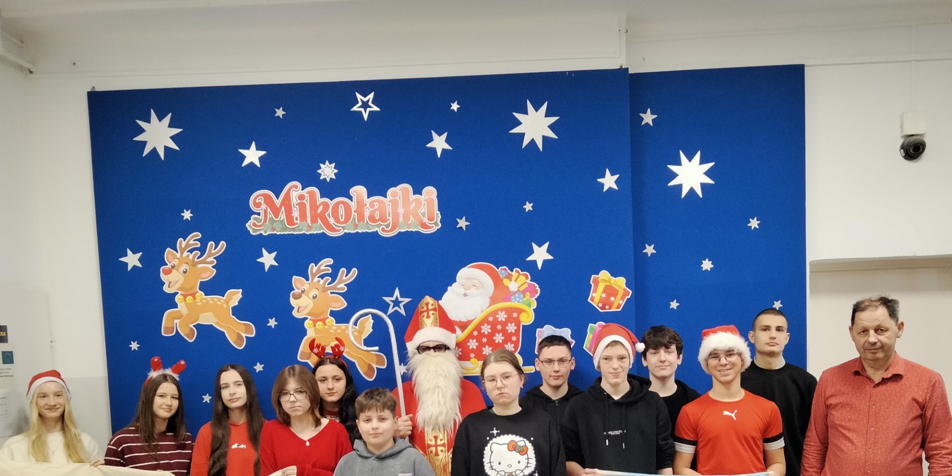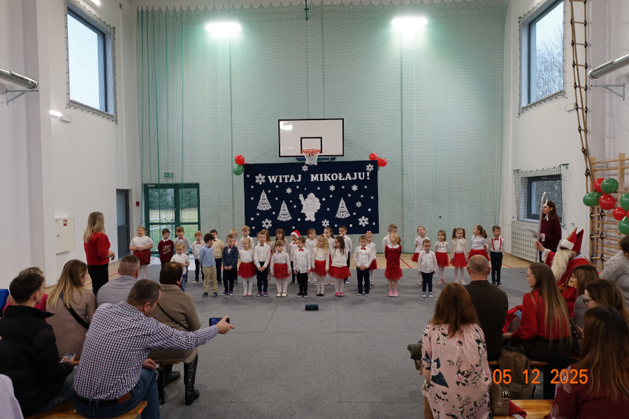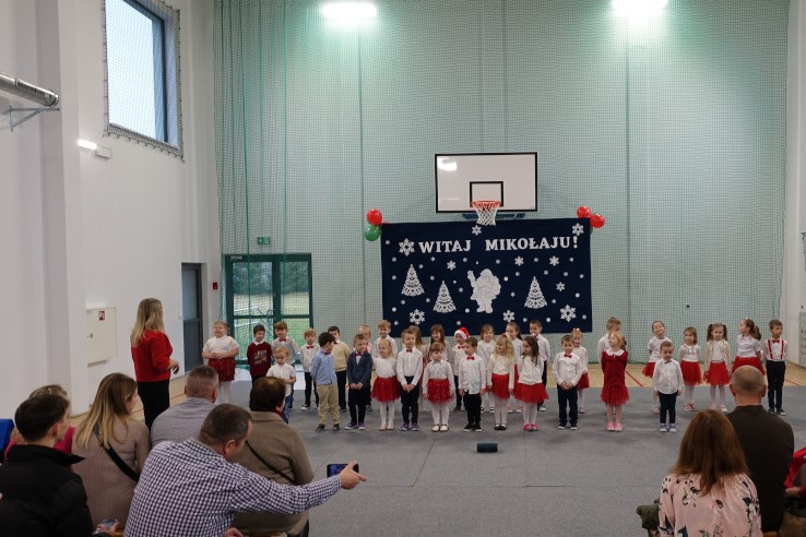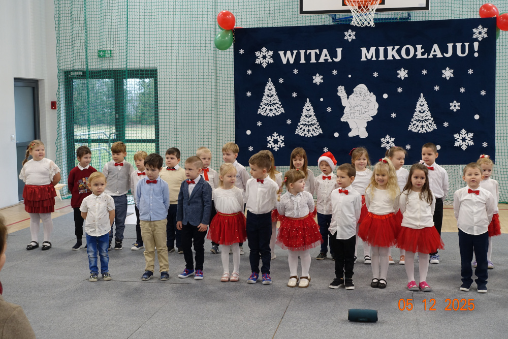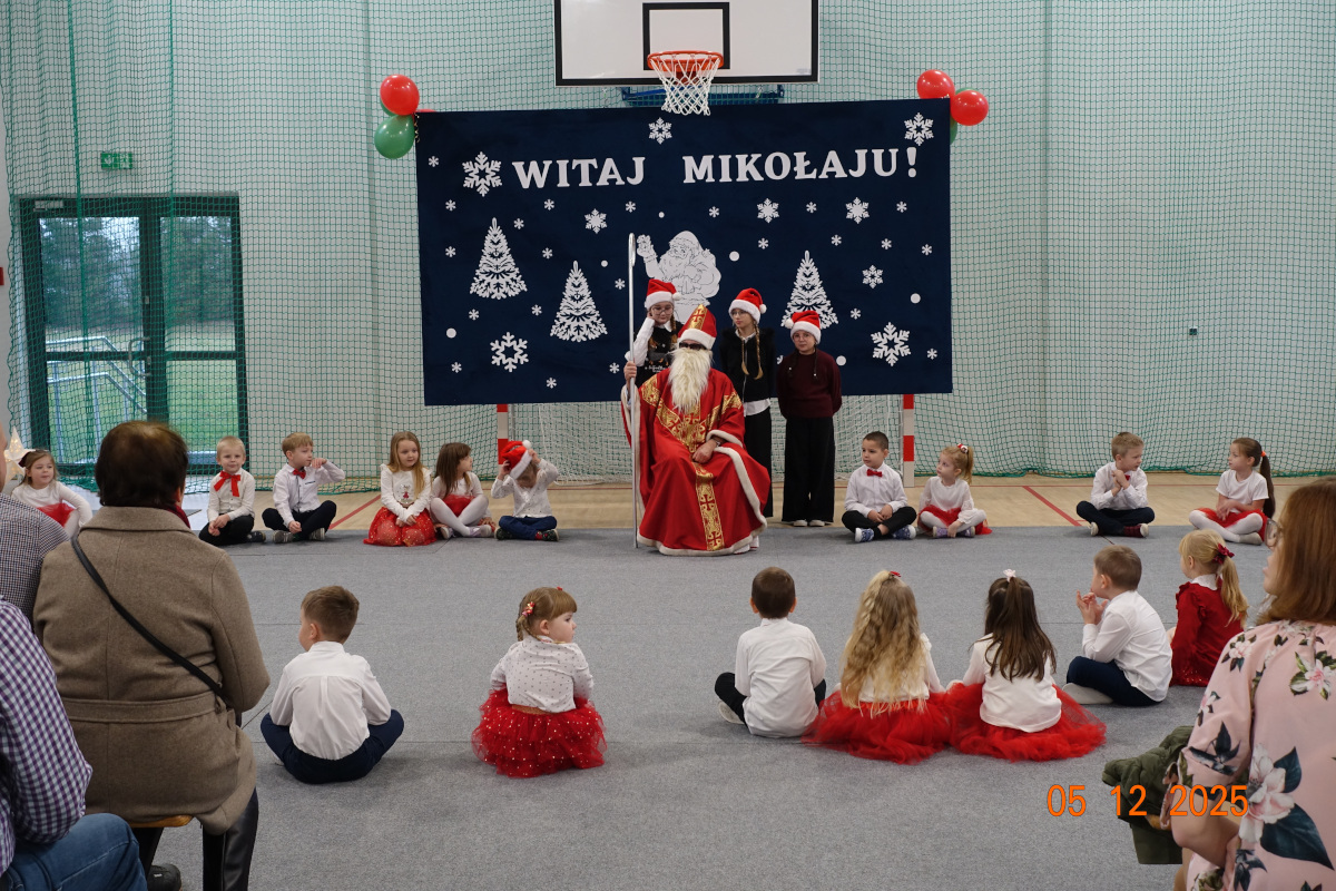 W szkole także tutaj pojawił się Mikołaj z pomocnikami, przynosząc słodkie upominki i dużo radości. Całe wydarzenie przebiegło w ciepłej, świątecznej atmosferze i sprawiło wiele uśmiechu zarówno młodszym, jak i starszym dzieciom.