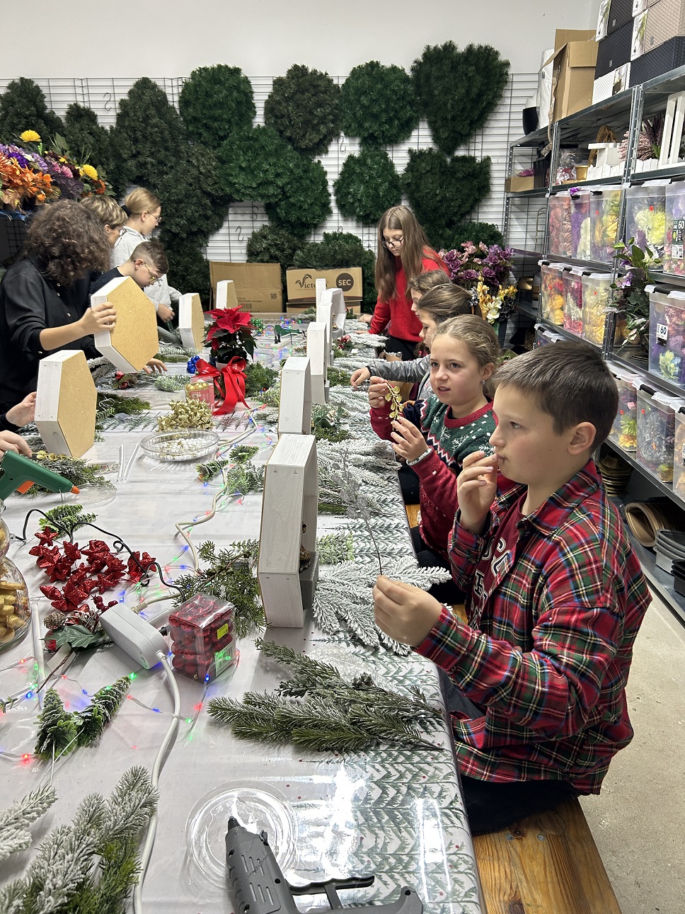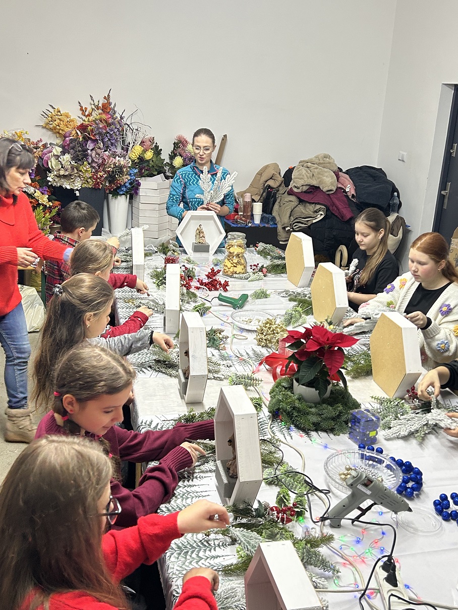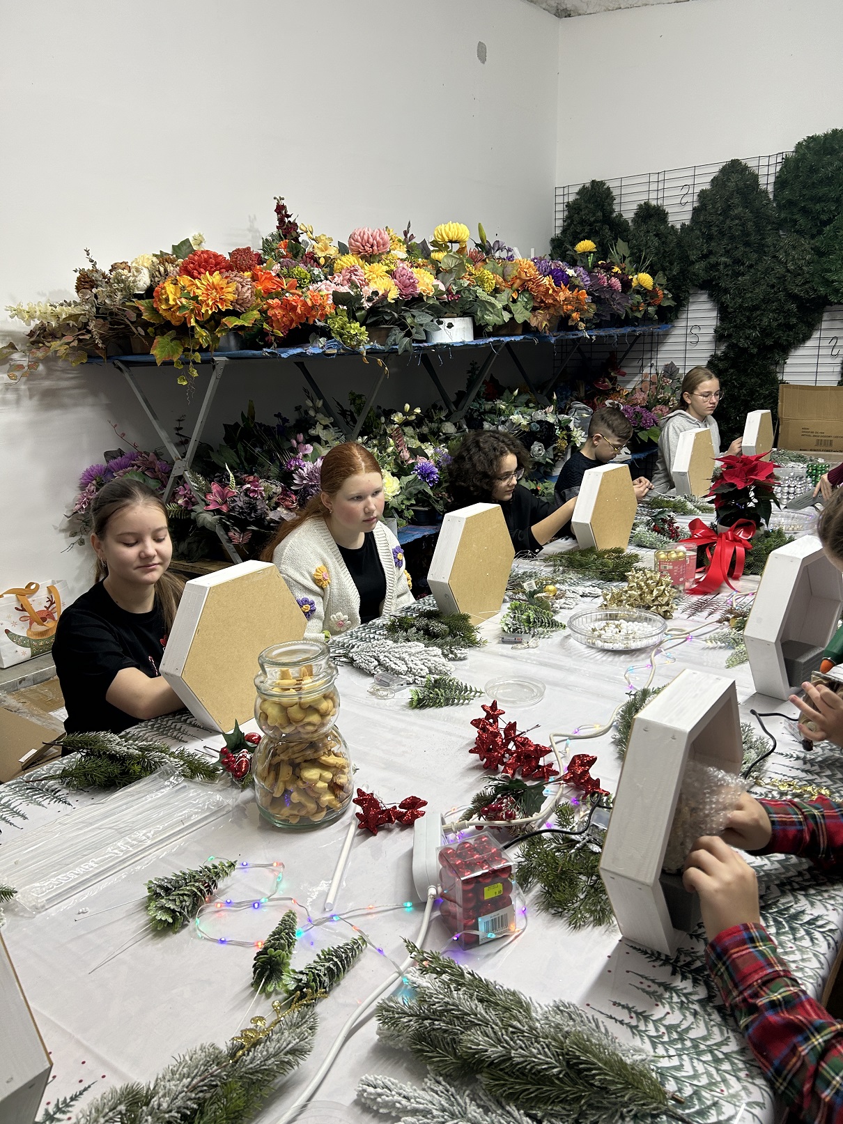 Warsztatom towarzyszyła wyjątkowa atmosfera, a uczniowie z dużym zaangażowaniem tworzyli własne, oryginalne kompozycje. Dodatkową atrakcją była sesja fotograficzna przygotowana w specjalnie zaaranżowanej, świątecznej scenerii.