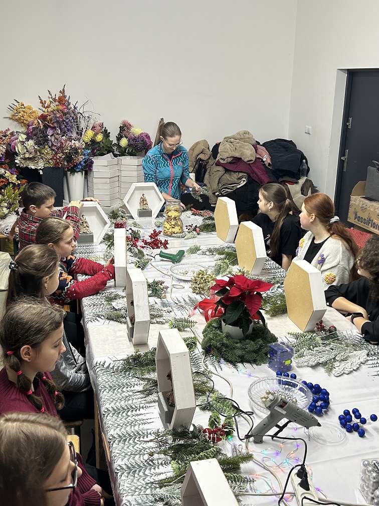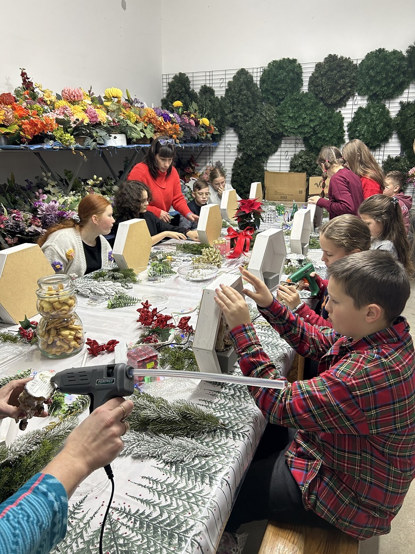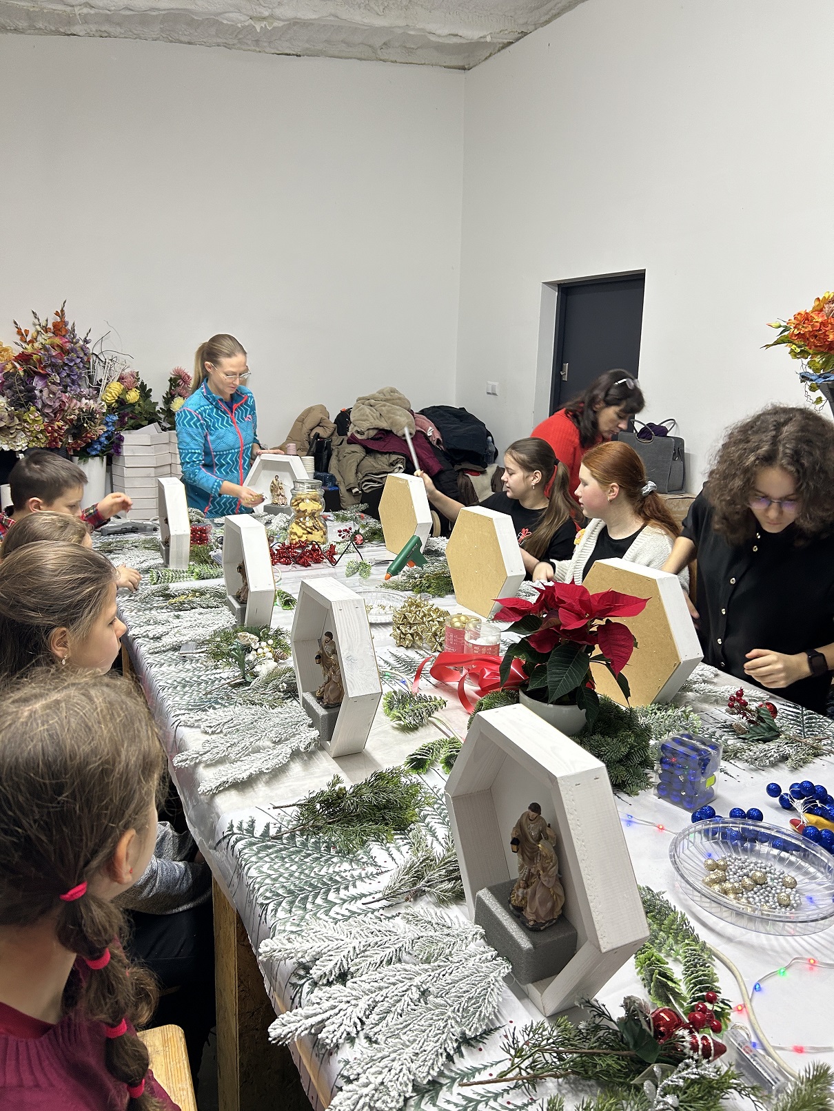 Warsztatom towarzyszyła wyjątkowa atmosfera, a uczniowie z dużym zaangażowaniem tworzyli własne, oryginalne kompozycje. Dodatkową atrakcją była sesja fotograficzna przygotowana w specjalnie zaaranżowanej, świątecznej scenerii.
